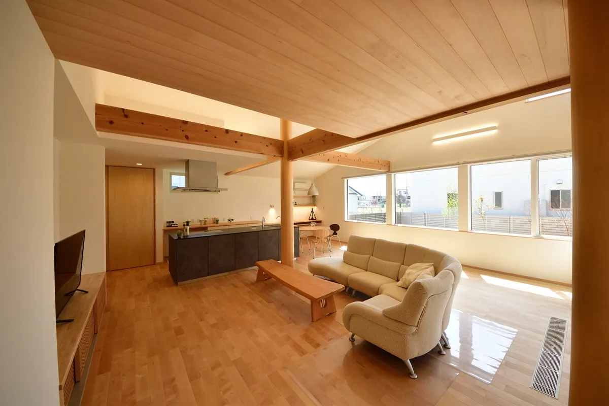 木の家に似合う木製サッシ。庭に繋がる窓や景色を切り取る窓を額縁のように彩ってくれます。サイズは特注で、設計に合わせてサイズを指定することができます。デザイン性もありながら、日射取得率が高いガラスと断熱性能の高い木製枠で、快適な暮らしを作ってくれます。