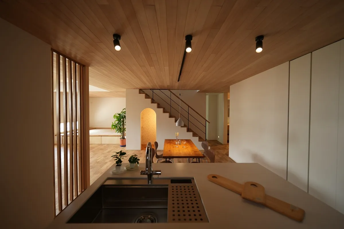 南欧の田舎のお家をモチーフに設計がスタートしました。家族で映画をみるリビング、家族でお菓子作りをするキッチン、家族が集まれるそれぞれゆとりのある空間と、どこにいても気配を感じられる間取りがポイントです。