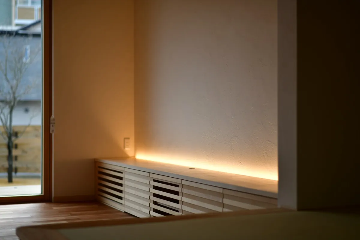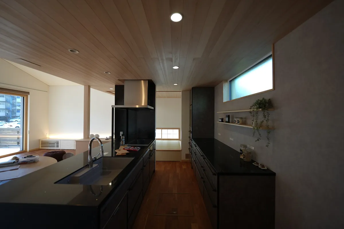 北海道出身の旦那様が日本一暑い多治見市での新築です。北海道のように、冬に半袖でアイスを食べるような暖かい家に住みたいとのご要望で、とにかく断熱・気密と空調の快適性そして省エネ性にこだわった住まいです。